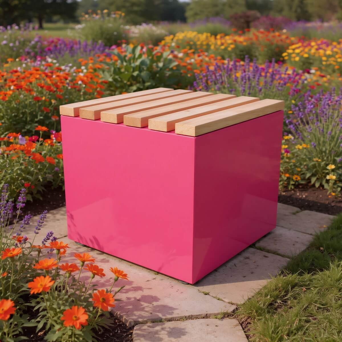 Bänk ist in vielen verschiedenen Farben erhältlich – von dezent und elegant bis hin zu mutig und urban. So wird aus einem schlichten Sitzmöbel ein echtes Gestaltungselement, das deinem Außenbereich Charakter verleiht.