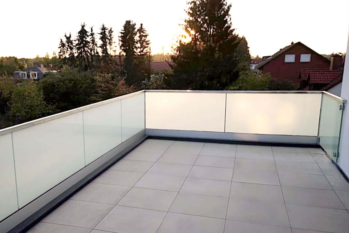 Soll das Geländer neben der Absturzsicherung auch den Zweck erfüllen, fremde Blicke von Ihnen fernzuhalten, empfehlen wir Ihnen ein satiniertes Glas. Dieses können Sie mit einem individuellen Muster ganz auf Ihre Bedürfnisse anpassen. Wenn Sie es noch individueller möchten, können Sie dem Geländer mit einem eigenen Druckmotiv Ihre ganz persönliche Note verleihen.