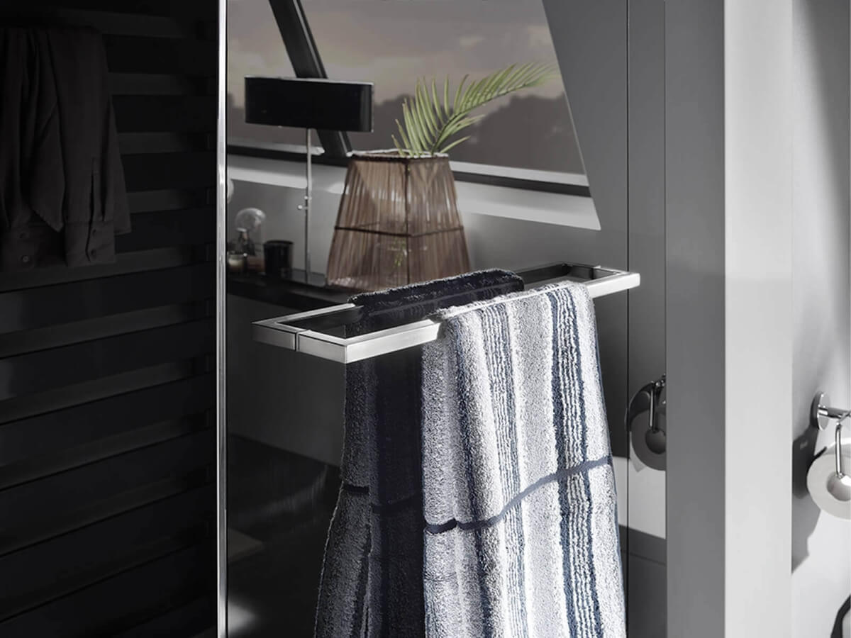 Mit unserem Handtuchhalter haben Sie Ihre Badetücher immer griffbereit und schaffen zusätzlich mehr Ordnung in Ihrem Badezimmer. Auch zum Trocknen feuchter Handtücher ist er durch seine langlebige Qualität ideal geeignet.