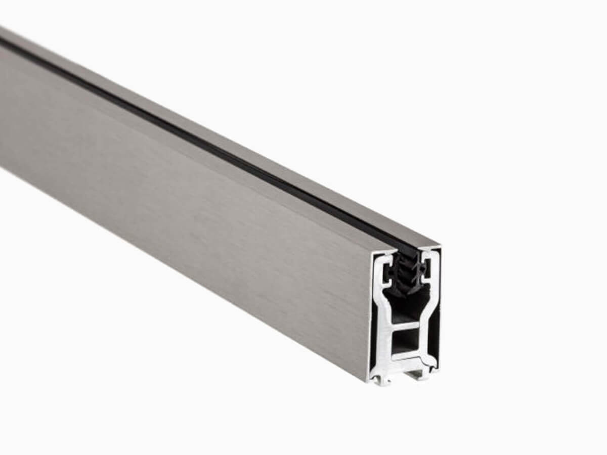 Standardmäßig erhalten Sie die Führungsschiene in einer Edelstahloptik. Auf Wunsch gibt es die Oberflächen auch in Schwarz, Weiß, Anthrazit oder in einem RAL-Ton Ihrer Wahl.