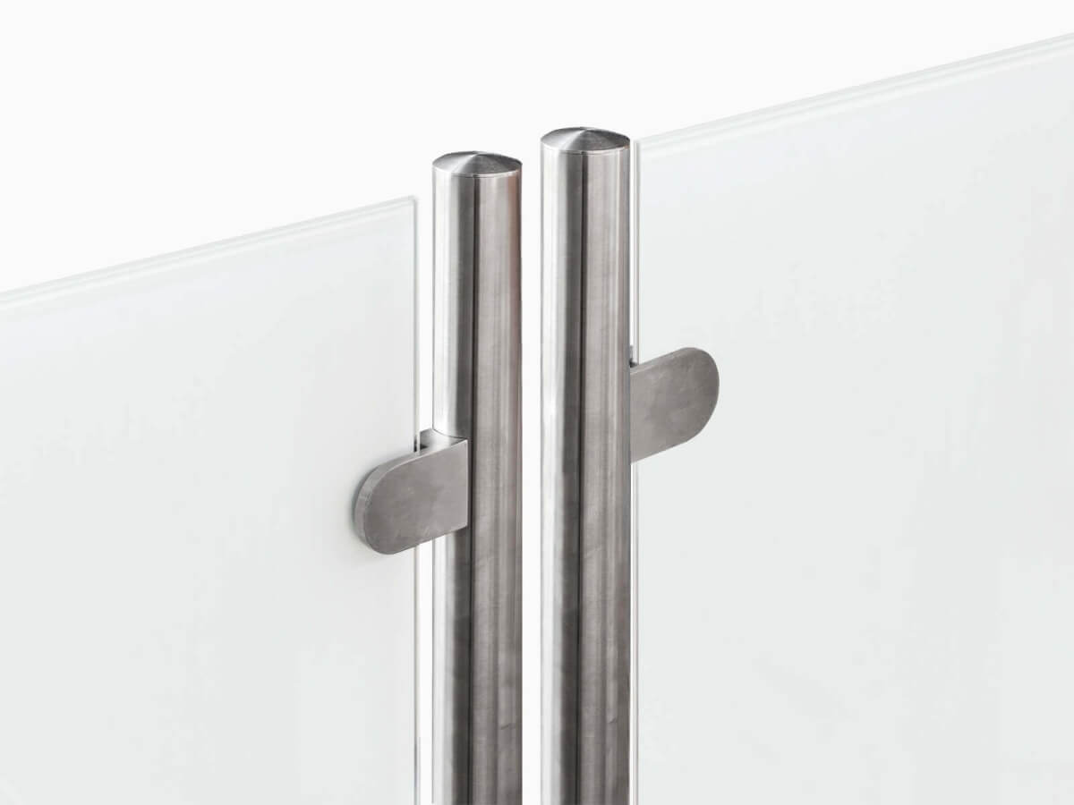 Die Rundpfosten der Stellwand POSTO werden aus matt gebürstetem Edelstahl in V2A-Qualität gefertigt. Bei einem Durchmesser von 42 mm kann die Höhe der Pfosten je nach Wunsch zwischen 75 und 180 cm variieren. Die Abstände zwischen den Pfosten sowie die entsprechende Größe der Scheibe können Sie ebenfalls frei wählen. Möglich sind Abstände von 40 bis 200 cm.