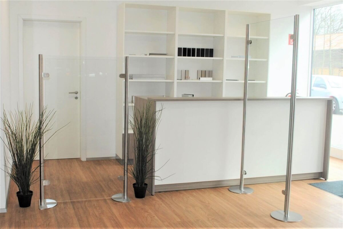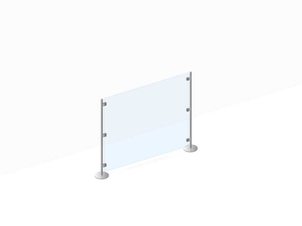 Die Stellwand POSTO erhalten Sie je nach Einsatzzweck mit Einscheibensicherheitsglas (ESG) in 10 mm Stärke oder mit Verbundsicherheitsglas (VSG) in 12,76 mm Stärke.