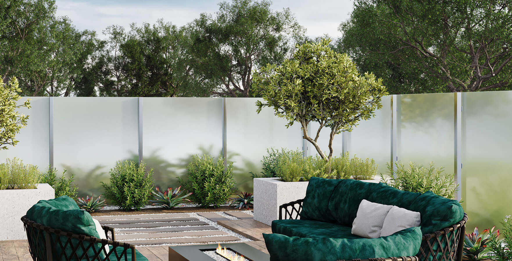 Individuelles Sichtschutzsystem aus Glas für Garten, Terrasse oder Balkon